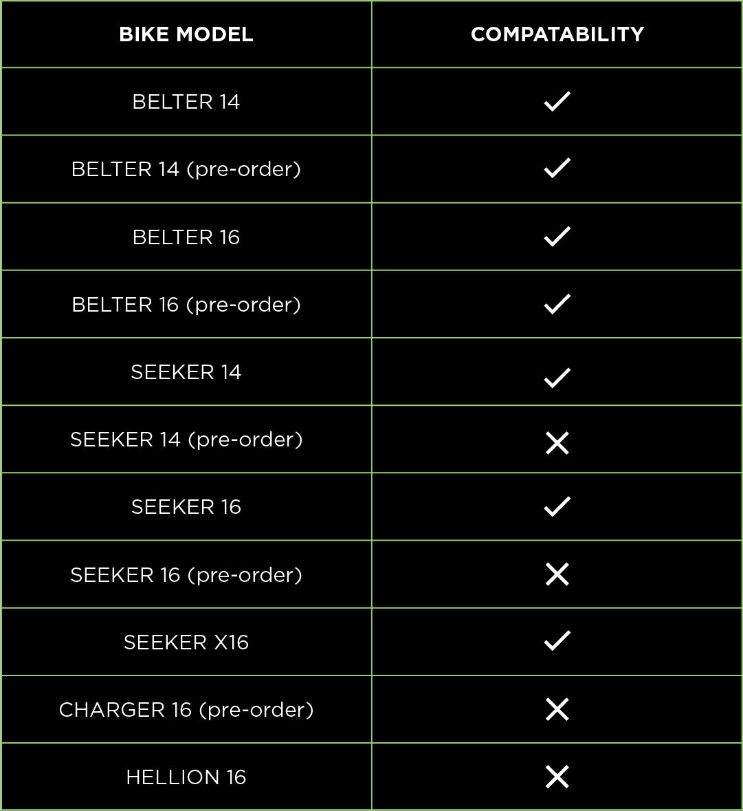 - Fits all 14/16" Seeker and Belter models featuring our V4 forged vertical dropout plates. (M6 or QR compatible) - Back to approx 2015 models