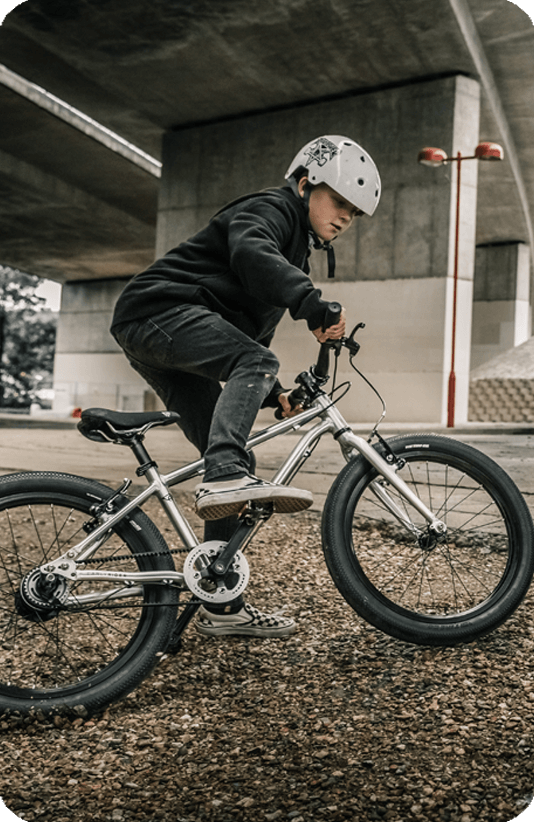 Meet the ultimate 14” kids’ bike – super lightweight with a genius carbon belt drive, perfect for adventures on tarmac, gravel, grass and dirt. To help kids ages 3-5 years master pedals faster.