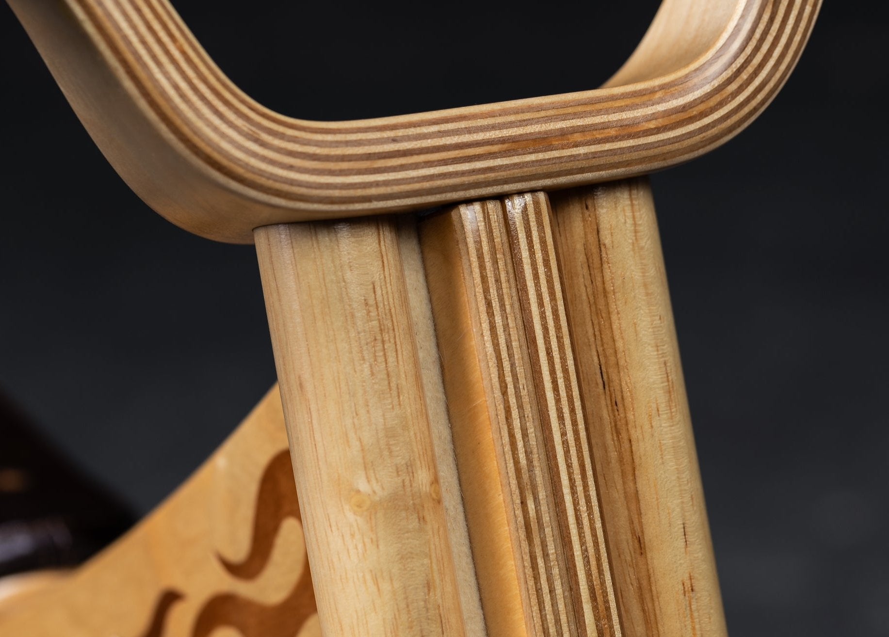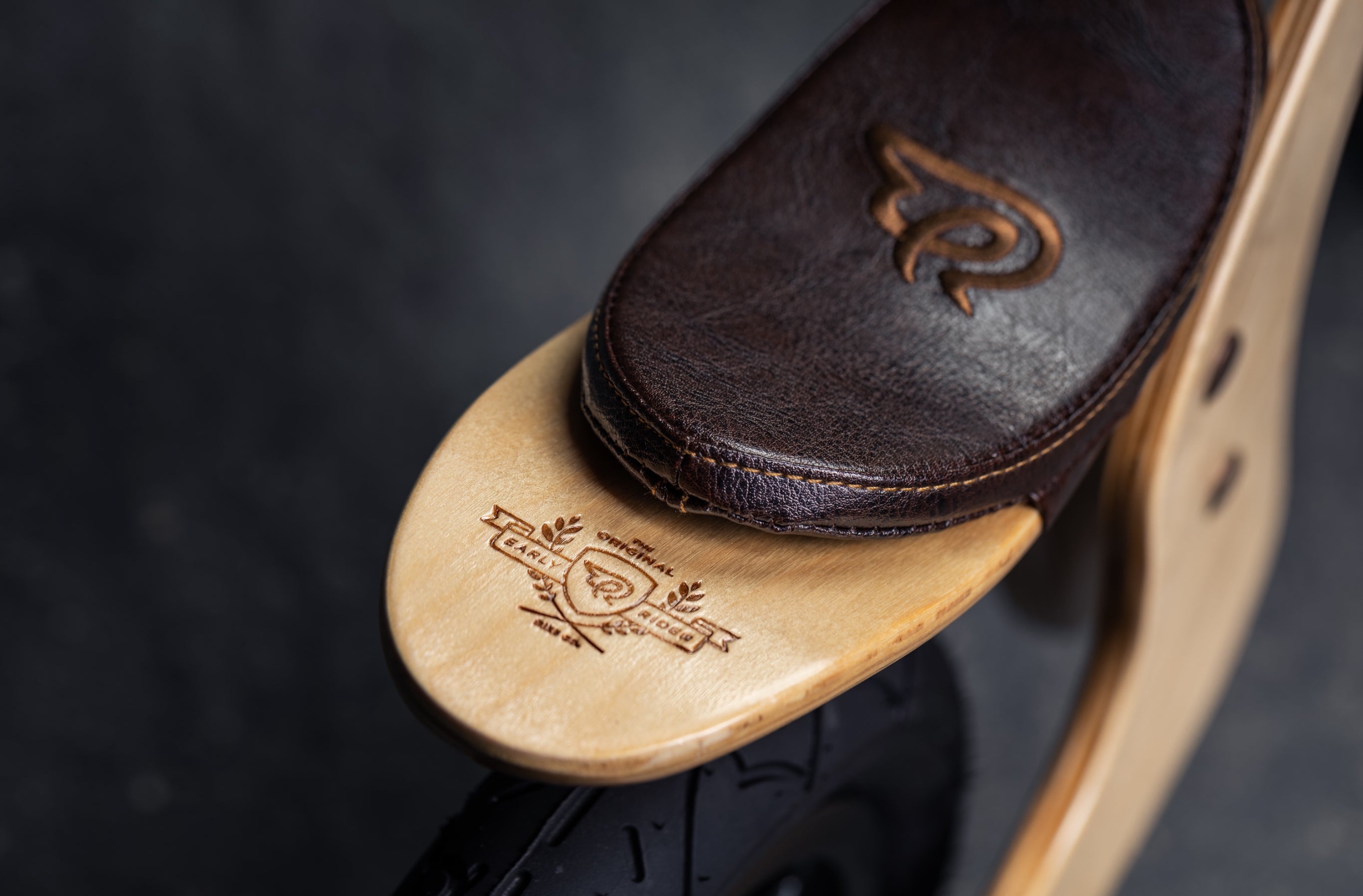 Proving wooden bikes can be innovative, they can be durable and they can easily ignite a life long passion for bikes. Crafted from marine-grade Super Ply, The Lite is resistant to rot, warping, and decay. Its two-step steering system aids safe skill progression while heat-branded detailing, vegan leather seats, and hardened brass bolts ensure durability. Lightweight aluminium rims and wide tires provide stability and comfort for 2-4-year-olds. The Lite is sustainably designed to inspire, endure and draw just a bit of awe.